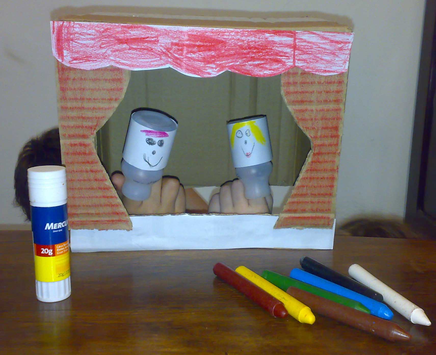 reciclável para a confecção dos fantoches utilizados na peça, ensinando as